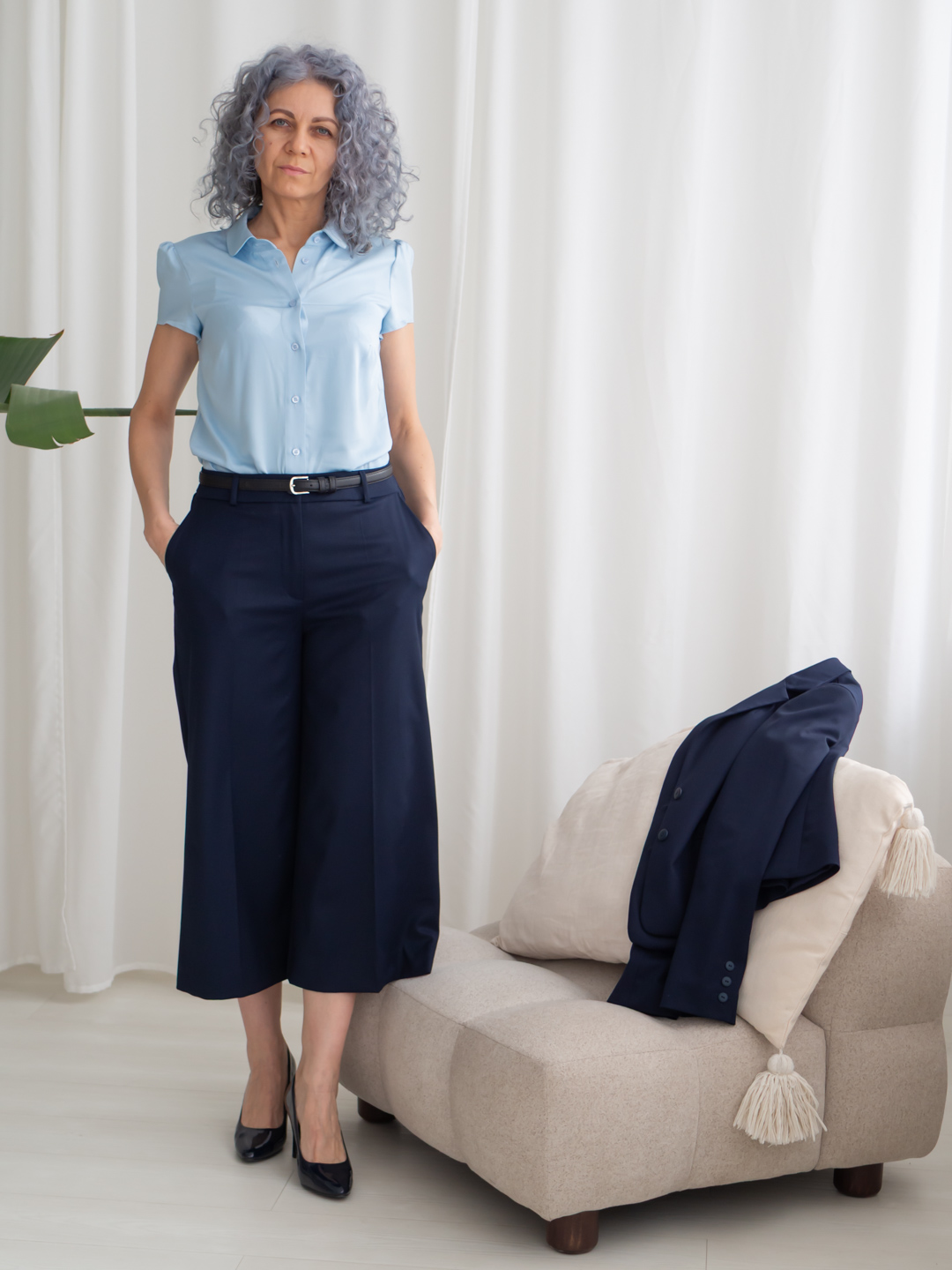 Bluzka Vienna błękitna oferuje nieskończone możliwości stylizacyjne. W wydaniu biurowym zestaw ją z ciemnogranatowymi cygaretkami i klasycznymi szpilkami. Jeśli wolisz bardziej swobodny, a zarazem elegancki look, połącz ją z białą spódnicą midi lub jeansami o prostym kroju. Okrągły kołnierzyk sprawia, że bluzka wygląda kompletnie nawet bez naszyjnika, co docenią miłośniczki minimalistycznej biżuterii.