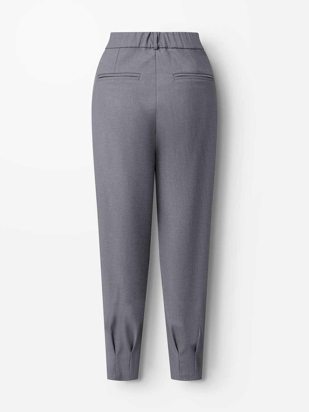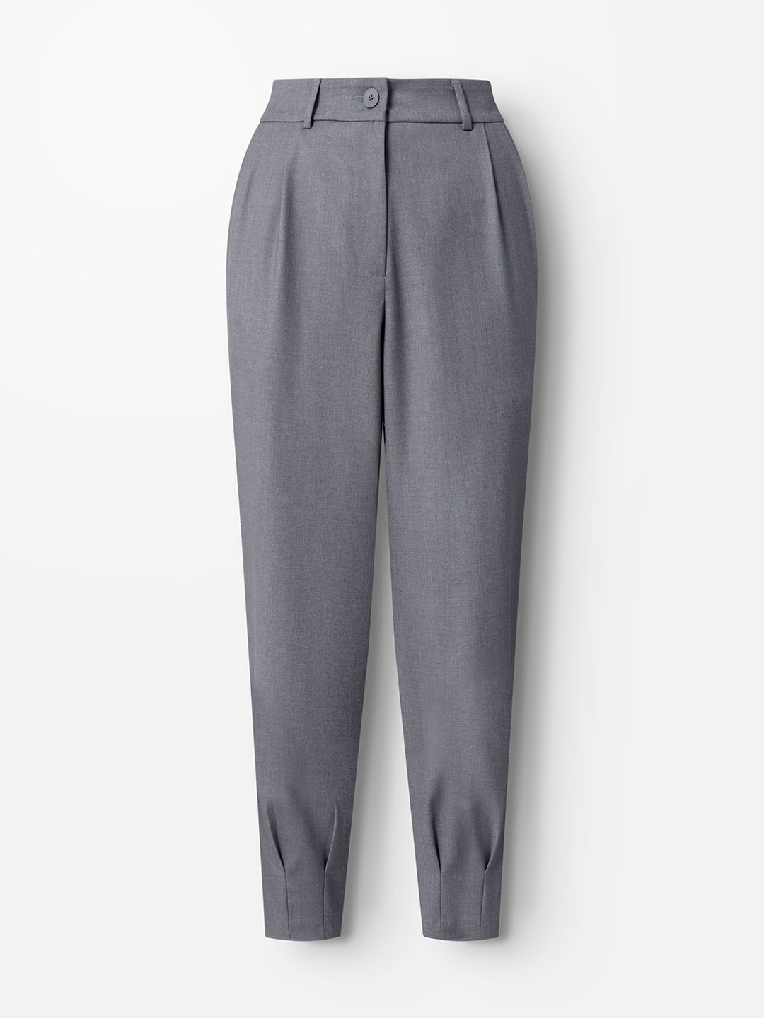 - Detale: 2 zakładki w pasie + 2 zaszewki w dole nogawki (przód i tył)